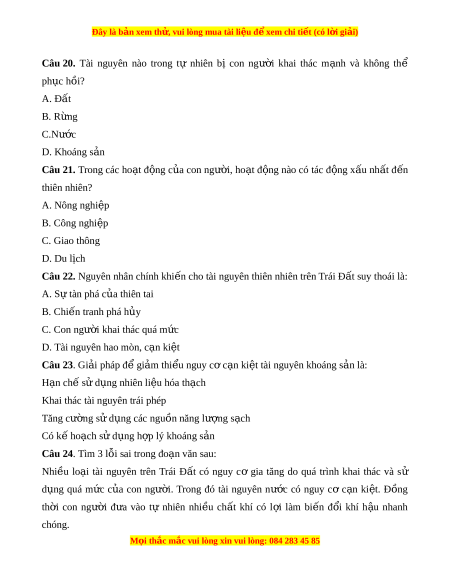 Câu 23. Gi i pháp đ gi m thi u nguy c c n ki t tài nguyên khoáng s n là:ả ể ả ể ơ ạ ệ ả