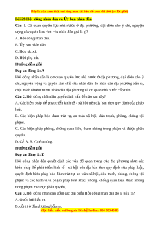Đây là bản xem th , vu ử i lòng mua tài li u ệ đ xe ể m chi ti t ế (có l i ờ gi i ả ) Bài 23 H i ộ đ ng nhâ ồ n dân và y ban nhâ Ủ n dân Câu 1. Cơ quan quy n ề l c ự nhà nư c ớ ở đ a ị phư ng, ơ đ i ạ di n ệ cho ý chí, nguy n ệ v ng ọ và quy n l ề àm ch c ủ a ủ nhân dân g i ọ là gì? A. H i ộ đồng nhân dân. B. y ban nhân dân. Ủ C. H p t ợ ác xã. D. H i ộ ph n ụ . ữ Hư ng d ớ ẫn gi i ả Đáp án đúng là: A H i ộ đ ng