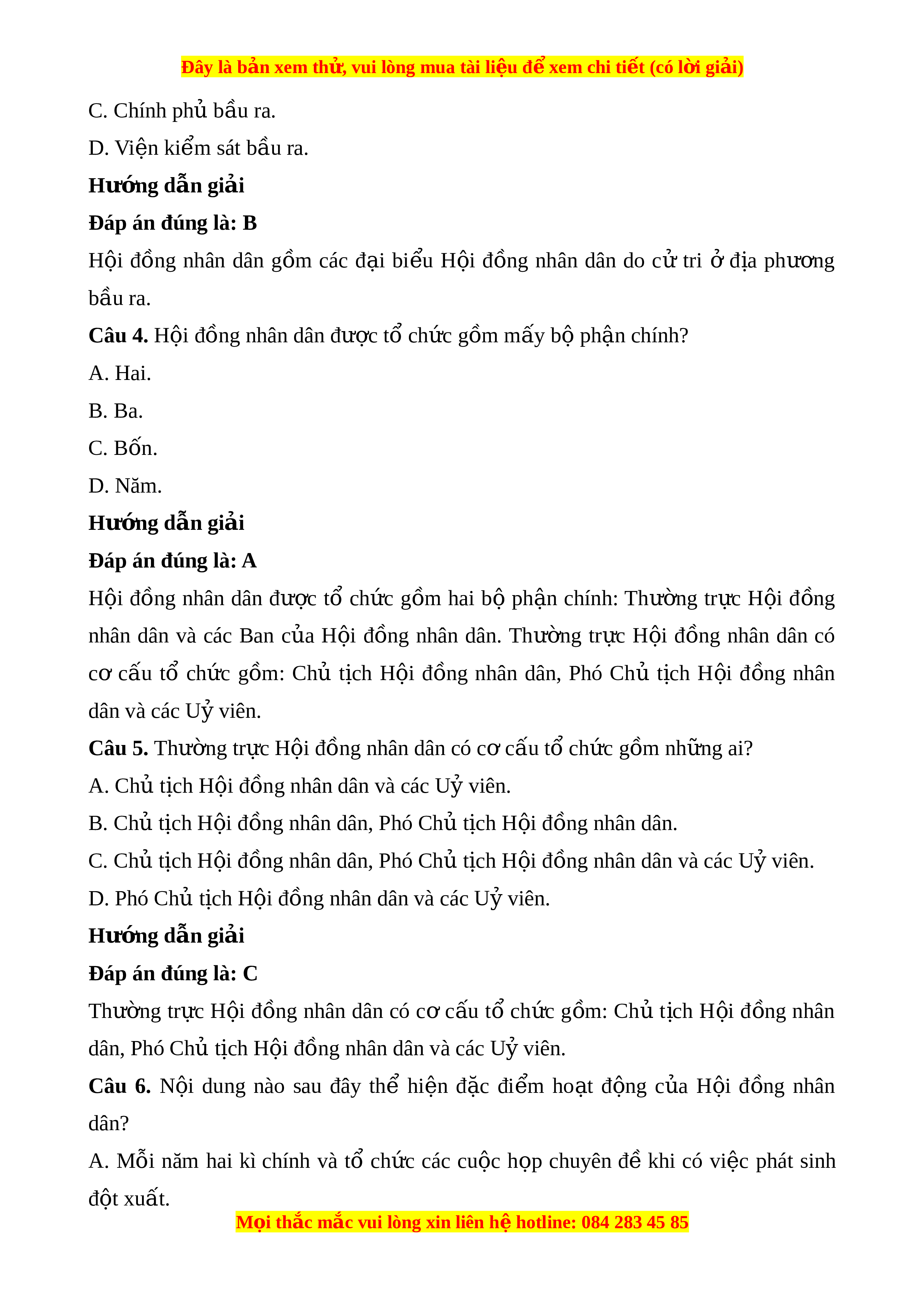 Đây là bản xem th , vu ử i lòng mua tài li u ệ đ xe ể m chi ti t ế (có l i ờ gi i ả ) C. Chính ph b ủ u r ầ a. D. Viện ki m ể sát bầu ra. Hư ng d ớ ẫn gi i ả Đáp án đúng là: B H i ộ đ ng ồ nhân dân g m ồ các đ i ạ bi u ể H i ộ đ ng