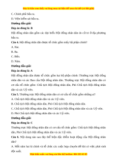 ồ nhân dân, Phó Chủ t ch ị H i ộ đ ng ồ nhân dân và các U vi ỷ ên. Câu 5. Thư ng t ờ r c H ự i ộ đ ng nhân dân có c ồ ơ c u t ấ ch ổ c ứ g m ồ nh ng ữ ai? A. Chủ tịch H i ộ đ ng nhân dân và các ồ U vi ỷ ên. B. Ch t ủ ịch H i ộ đ ng nhân dân, Phó C ồ hủ t ch ị H i ộ đ ng nhân dân. ồ C. Ch t ủ ịch H i ộ đ ng nhân dân, Phó C ồ hủ t ch ị H i ộ đ ng nhân dân và các ồ U vi ỷ ên. D. Phó Chủ tịch H i ộ đ ng nhân dân và các ồ U vi ỷ ên. Hư ng d ớ ẫn gi i ả Đáp án đúng là: C Thư ng ờ tr c ự H i ộ đ ng ồ nhân dân có c ơ c u ấ t ổ ch c ứ g m ồ : Ch ủ t ch ị H i ộ đ ng ồ nhân dân, Phó Chủ t ch H ị i ộ đ ng nhân dân và các ồ U vi ỷ ên. Câu 6. N i