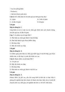 Câu 6. KIT chẩn đoán sẽ cho kết quả sao thời gian bao lâu? A. 4 phút B. 5 đến 10 phút C. 10 đến 30 phút D. 60 phút