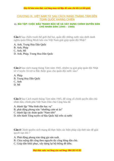 CHƯƠNG IX. VIỆT NAM TỪ SAU CÁCH MẠNG THÁNG TÁM ĐẾN TOÀN QUỐC KHÁNG CHIẾN