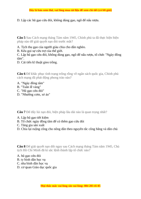 Câu 8 Để giải quyết nạn dốt ngay sau Cách mạng tháng Tám năm 1945, Chủ