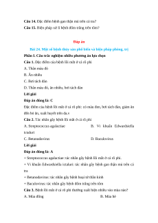 Câu 1. Đặc điểm của bệnh lồi mắt ở cá rô phi A. Thân màu đỏ B. Ăn nhiều C. Bơi tách đàn