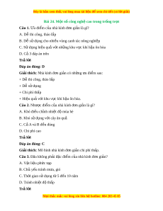 Đây là bản xem th , vu ử i lòng mua tài li u ệ đ xe ể m chi ti t (c ế ó l i ờ gi i ả ) Bài 24. M t ộ số công ngh cao ệ trong tr ng ồ tr t ọ Câu 1. Ưu đi m ể c a ủ nhà kính đ n gi ơ n ả là gì? A. Dễ thi công, tháo l p ắ B. D s ễ ử d ng cho nhi ụ u vùng canh t ề ác nông nghi p ệ C. S d ử ng hi ụ u qu ệ v ả i ớ nh ng khu v ữ c ự khí h u ôn hòa ậ D. C 3 đáp án ả trên Trả l i ờ Đáp án đúng: D