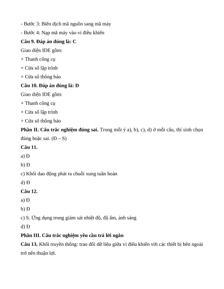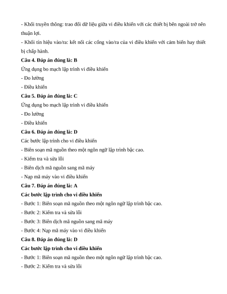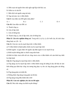 Câu 6. Lập trình vi điều khiển gồm mấy bước? A. 1 B. 2 C. 3 D. 4
