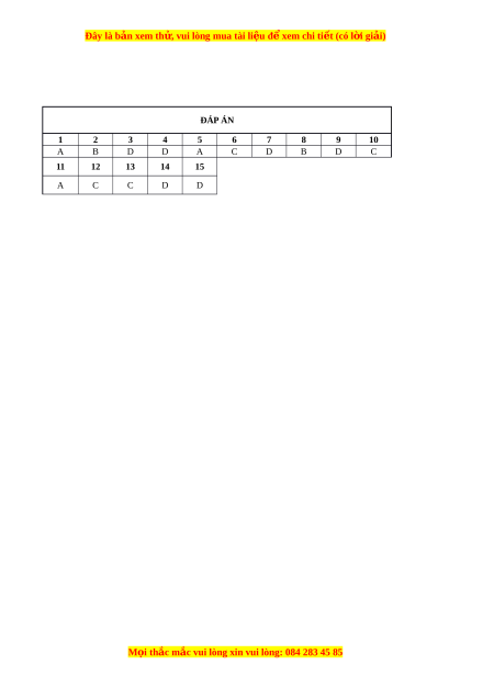 Đây là bản xem th , vu ử i lòng mua tài li u ệ đ xe ể m chi ti t (c ế ó l i ờ gi i ả ) ĐÁP ÁN 1 2 3 4 5 6 7 8 9 10 A B D D A C D B D C 11 12 13 14 15 A C C D D M i ọ thắc m c