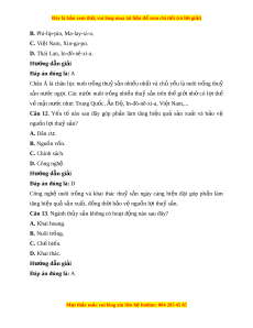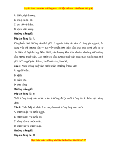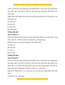 Câu 10. Châu l c nào nuôi ụ trồng th y s ủ n nhi ả u ề nh t ấ ? A. Châu Âu. B. Châu Phi. C. Châu Á. D. Châu M . ỹ Hư ng d ớ ẫn gi i ả Đáp án đúng là: C Châu Á là châu l c ụ nuôi tr ng t ồ hu s ỷ n ả nhi u nh ề t ấ và ch y ủ u l ế à nuôi tr ng t ồ huỷ s n ả nư c ớ ng t
