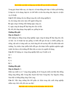 Câu 10. Số lư ng các ợ vùng nông nghi p hi ệ n nay ệ ở nư c t ớ a là A. 7. B. 6. C. 4. D. 5. Hư ng d ớ ẫn gi i ả Đáp án đúng là: A Hi n nay n ệ ư c