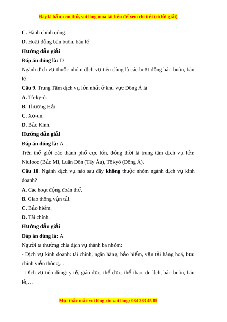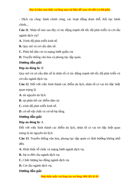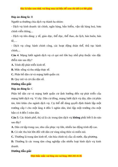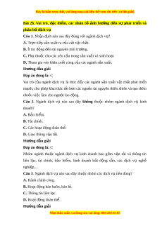 Đây là bản xem th , vu ử i lòng mua tài li u ệ đ xe ể m chi ti t ế (có l i ờ gi i ả ) Bài 26. Vai trò, đ c ặ đi m ể , các nhân tố n ả h hư ng ở đ n ế sự phát tri n ể và phân bố d ch v ị ụ Câu 1. Nh n đ ậ