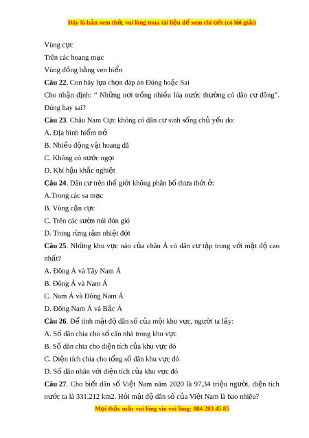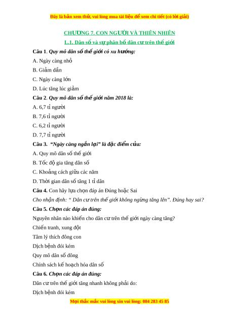Đây là bản xem th , vu ử i lòng mua tài li u ệ đ xe ể m chi ti t ế (có l i ờ gi i ả ) CHƯ N Ơ G 7. CON NGƯ I Ờ VÀ THIÊN NHIÊN L .1. D ân s và s ố phân b ự dân c ố t ư rên th gi ế i ớ