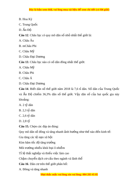 Đây là bản xem th , vu ử i lòng mua tài li u ệ đ xe ể m chi ti t ế (có l i ờ gi i ả ) B. Hoa Kỳ C. Trung Quốc D. n Đ Ấ ộ Câu 12. Châu l c