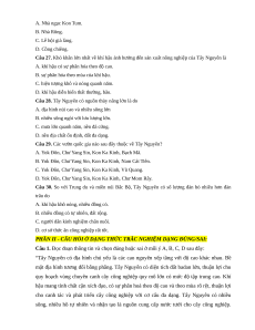 Câu 13. Cây chè được trồng nhiều nhất ở các tỉnh nào của Tây Nguyên ? A. Gia Lai, Kon Tum. B. Kon Tum, Đắk Lắk. C. Đắk Lắk, Lâm Đồng. D. Lâm Đồng, Gia Lai.