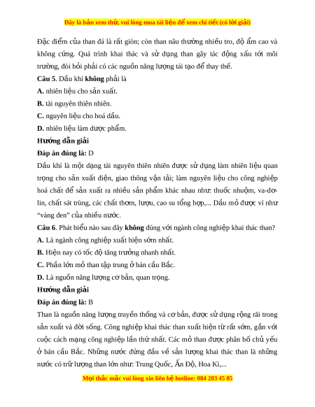 Câu 6. Phát bi u nào sau đây ể không đúng v i ngành công nghi p khai thác than?ớ ệ