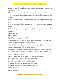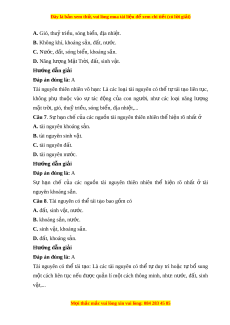 Câu 5. Tài nguyên nào sau đây không th khôi ể ph c ụ đư c? ợ A. Bi n. ể B. Nư c. ớ C. Khoáng s n. ả D. Sinh v t ậ . Hư ng d ớ ẫn gi i ả Đáp án đúng là: C Tài nguyên không khôi ph c ụ đư c ợ là các lo i ạ khoáng s n. ả B i ở sự hình thành
