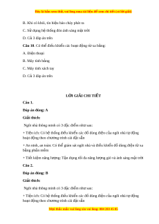 ệ thống đón ánh sáng m t ặ tr i ờ D. Cả 3 đáp án trên Câu 10. Có th đi ể u khi ề n các ể ho t ạ đ ng ộ t xa b ừ ng: ằ A. Đi n t ệ ho i ạ B. Máy tính b ng ả C. Máy tính xách tay D. Cả 3 đáp án trên L I Ờ GIẢI CHI TI T Ế Câu 1. Đáp án đúng: A Giải thích: