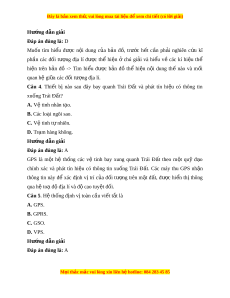 ế bị nào sau đây bay quanh Trái Đ t ấ và phát tín hi u ệ có thông tin xuống Trái Đ t ấ ? A. Vệ tinh nhân t o. ạ B. Các lo i ạ ngôi sao. C. Vệ tinh t nhi ự ên. D. Tr m ạ hàng không. Hư ng d ớ ẫn gi i ả Đáp án đúng là: A GPS là m t ộ hệ th ng
