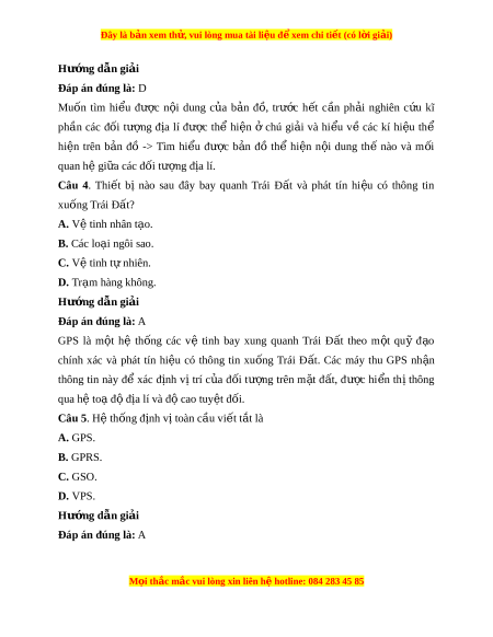 Đây là bản xem th , vu ử i lòng mua tài li u ệ đ xe ể m chi ti t (c ế ó l i ờ gi i ả ) Bài 3. S d ử ng b ụ n đ ả t ồ rong h c ọ t p… ậ Câu 1. Kí hi u c ệ a ủ b n đ ả dùng đ ồ t ể h hi ể n ệ A. các đối tư ng ợ đ a ị lí trên b n ả đ . ồ B. b n chú gi ả i ả cu m ả t ộ b n đ ả ồ.