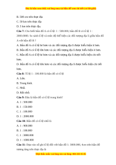 Câu 8: Tỉ lệ 1 : 100.000 là b n ả đ có ồ t l ỉ ệ A. L n. ớ B. Trung bình. C. Nh . ỏ D. Rất nh . ỏ