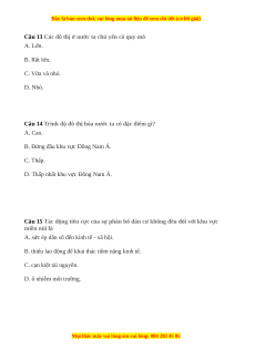 Câu 13 Các đô thị ở nước ta chủ yếu có quy mô