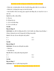 D. Gồm côn trùng, giun, nguyên sinh đ ng v ộ t ậ , các lo i ạ t o và các ả vi sinh v t ậ Trả l i ờ Đáp án đúng: C Giải thích: + Ph n l ầ ng: ỏ Có thành ph n ch ầ y ủ u ế là nư c ớ + Ph n r ầ n: ắ Là thành ph n ch ầ ủ y u c ế a đ ủ t ấ tr ng, g ồ m ồ ch t ấ vô c và h ơ u c ữ ơ + Ph n khí ầ