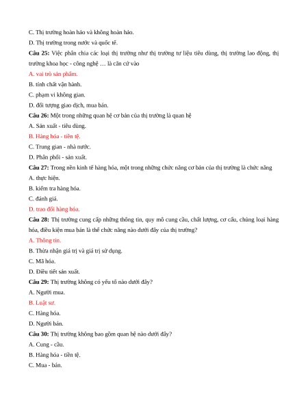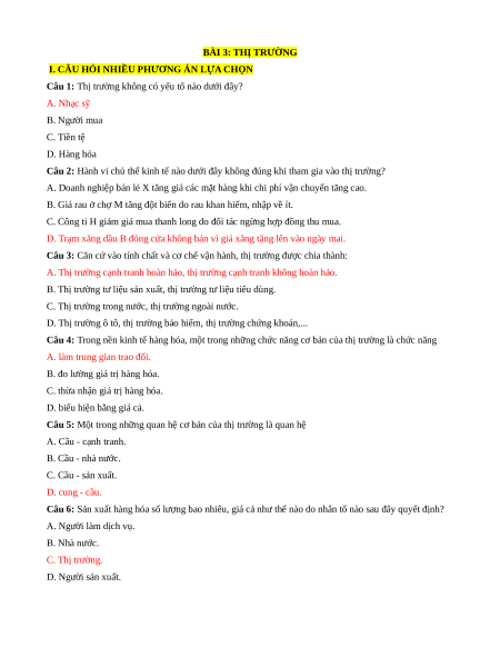 Câu 1: Thị trường không có yếu tố nào dưới đây? A. Nhạc sỹ B. Người mua C. Tiền tệ D. Hàng hóa