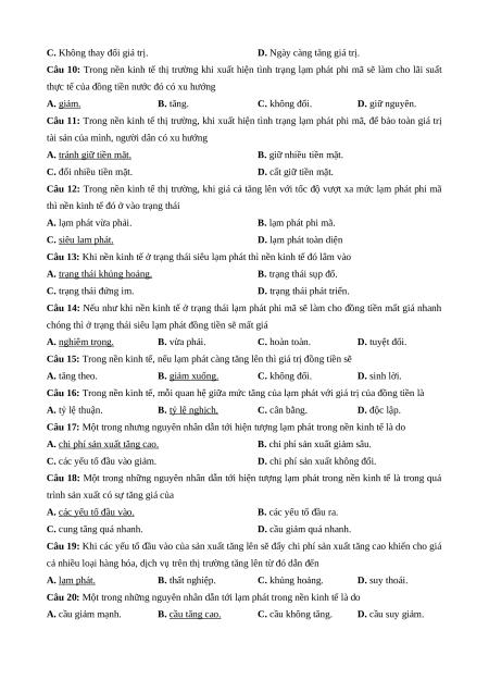 Câu 6: Trong nền kinh tế, khi mức độ tăng của giá cả ở hai con số trở lên hằng năm, gây bất ổn