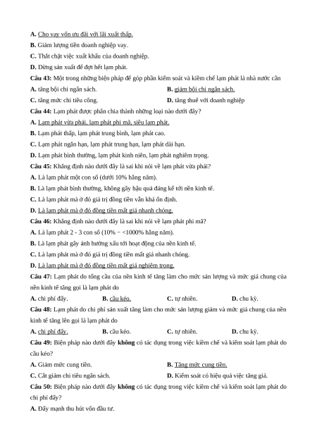 Câu 39: Một trong những biện pháp để góp phần kiểm soát và kiềm chế lạm phát là nhà nước