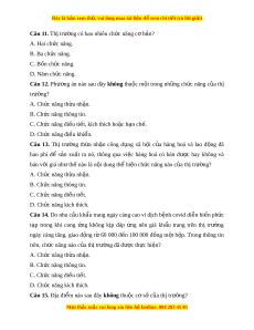 Câu 11. Thị trư ng có bao nhi ờ êu ch c ứ năng c b ơ n ả ? A. Hai ch c năng. ứ B. Ba ch c ứ năng. C. Bốn ch c năng. ứ D. Năm ch c năng. ứ Câu 12. Phư ng