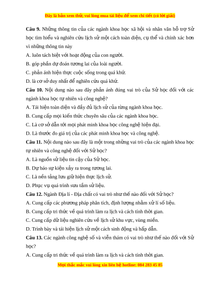 Đây là bản xem th , vu ử i lòng mua tài li u ệ đ xe ể m chi ti t (c ế ó l i ờ gi i ả ) Câu 9. Nh ng ữ thông tin c a ủ các ngành khoa h c ọ xã h i