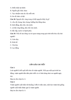 ế tố nào đóng vai trò quan tr ng t ọ rong quá trình ti n hóa c ế a ủ loài ngư i ờ ? A. Giáo d c. ụ B. Kinh t . ế C. Văn hóa D. Lao đ ng ộ L I Ờ GIẢI CHI TI T Ế Câu 1: Loài ngư i ờ là k t ế qu t ả i n hóa ế t v ừ ư n ng ợ ư i ờ . Tr i ả qua m t ộ quá trình lao đ ng, v ộ ư n ng ợ ư i