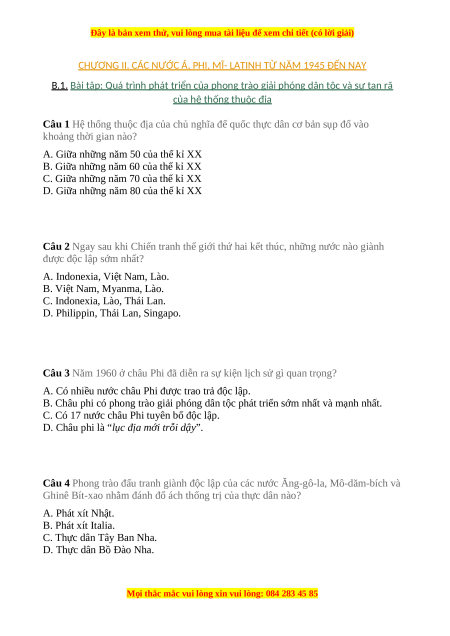 CHƯƠNG II. CÁC NƯỚC Á, PHI, MĨ- LATINH TỪ NĂM 1945 ĐẾN NAY B.1.