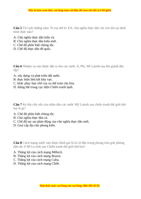 Câu 7 Kẻ thù chủ yếu của nhân dân các nước Mỹ Latinh sau chiến tranh thế giới thứ