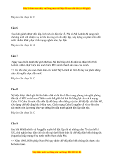 Năm 1960, 17 nước châu Phi tuyên bố độc lập. Lịch sử thế giới đã ghi nhận đây là “Năm châu Phi”. Đáp án cần chọn là: C Câu 4