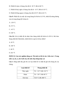Câu 10: Giá trị nhiệt độ đo được theo thang nhiệt độ Kelvin là 293 K. Hỏi theo
