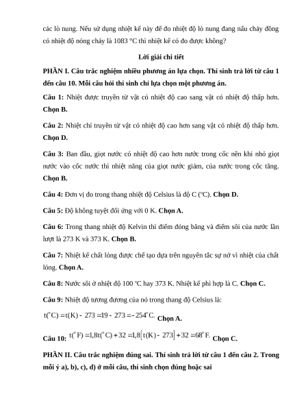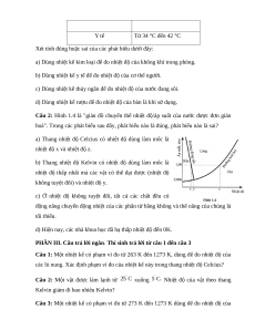 Câu 1: Một nhiệt kế có phạm vi đo từ 263 K đến 1273 K, dùng để đo nhiệt độ của