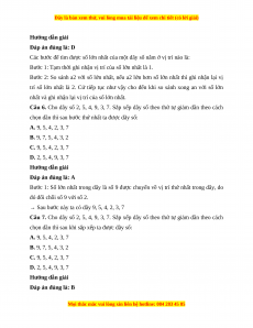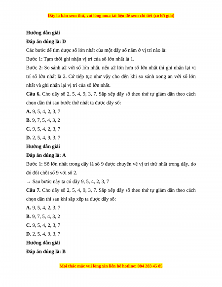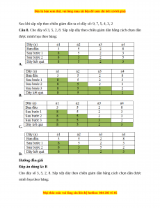 Câu 6. Cho dãy số 2, 5, 4, 9, 3, 7. Sắp xếp dãy số theo thứ tự giảm dần theo cách