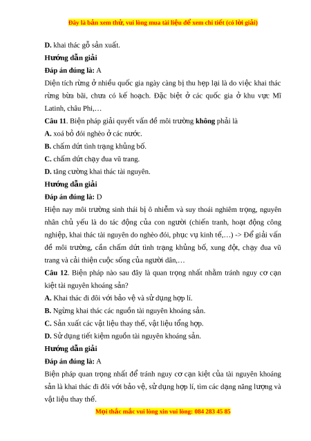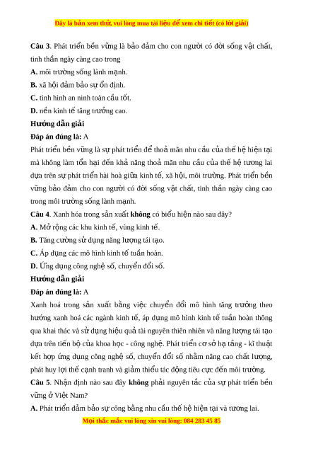 Đây là bản xem th , vu ử i lòng mua tài li u ệ đ xe ể m chi ti t (c ế ó l i ờ gi i ả ) Câu 3. Phát tri n ể b n ề v ng ữ là b o ả đ m ả cho con ngư i ờ có đ i ờ s ng ố v t ậ ch t ấ , tinh th n ngày càng cao ầ trong A. môi trư ng s ờ ống lành m nh. ạ B. xã h i ộ đ m ả b o s ả ự n đ ổ nh. ị