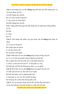ợ cho ngành giao thông đư ng ờ A. s t ắ . B. bi n. ể C. sông. D. ô tô. Câu 8. Ch t ấ lư ng ợ s n ả ph m ẩ c a ủ giao thông v n ậ t i ả không ph i ả đư c ợ đo b ng ằ