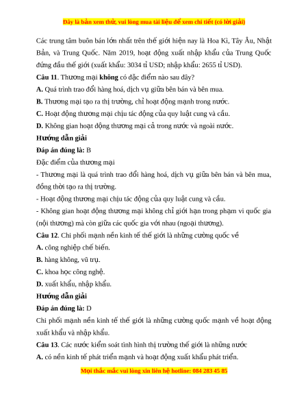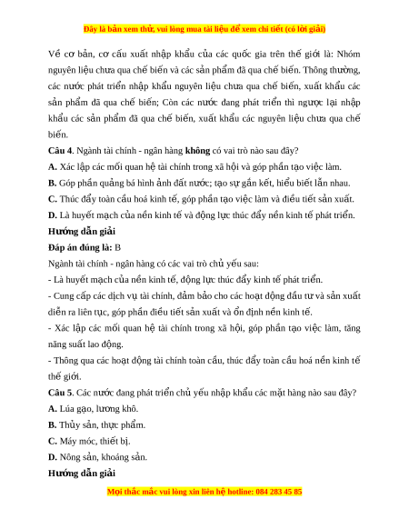 Đây là bản xem th , vu ử i lòng mua tài li u ệ đ xe ể m chi ti t (c ế ó l i ờ gi i ả ) Đáp án đúng là: C Các nư c ớ đang phát tri n ể xu t ấ kh u ẩ nông s n, ả khoáng s n, ả hàng tiêu dùng và nh p ậ nguyên li u, m ệ áy móc.