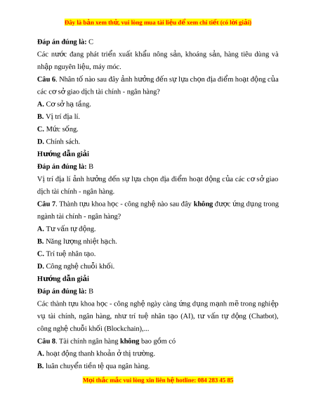 Đây là bản xem th , vu ử i lòng mua tài li u ệ đ xe ể m chi ti t (c ế ó l i ờ gi i ả ) C. các công c t ụ ài chính c a ủ ngân hàng. D. các dịch v gi ụ ao dịch v t ề ài chính. Hư ng d ớ ẫn gi i ả Đáp án đúng là: A Tài chính ngân hàng g m ồ các d ch ị vụ giao d ch ị tài chính, luân chuy n ể ti n ề tệ