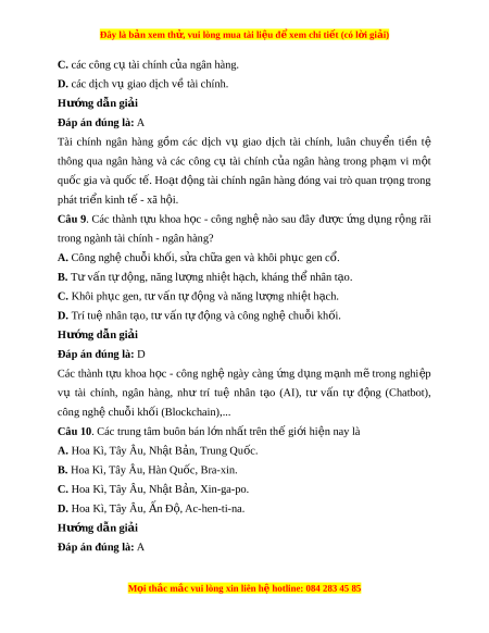 trong ngành tài chính - ngân hàng? A. Công ngh chu ệ ỗi kh i ố , s a ử ch a gen và khôi ữ ph c ụ gen cổ. B. T v ư ấn t đ ự ng, ộ năng lư ng nhi ợ t ệ h ch, ạ kháng th nhân t ể o. ạ C. Khôi ph c ụ gen, t v ư ấn t đ ự ng và ộ năng lư ng ợ nhi t ệ hạch.