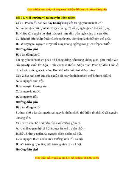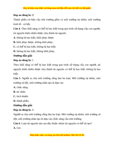 Đây là bản xem th , vu ử i lòng mua tài li u ệ đ xe ể m chi ti t (c ế ó l i ờ gi i ả ) Đáp án đúng là: D Thành ph n ầ cơ b n ả c a ủ môi trư ng ờ g m ồ có môi trư ng ờ tự nhiên, môi trư ng ờ kinh t - ế xã h i ộ .