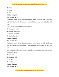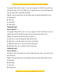 Câu 7. Tài nguyên có th t ể ái t o ạ bao gồm có A. khoáng s n, n ả ước. B. sinh v t ậ , khoáng s n. ả C. đất, sinh v t ậ , nư c. ớ D. đất, khoáng s n. ả Hư ng d ớ ẫn gi i ả Đáp án đúng là: C