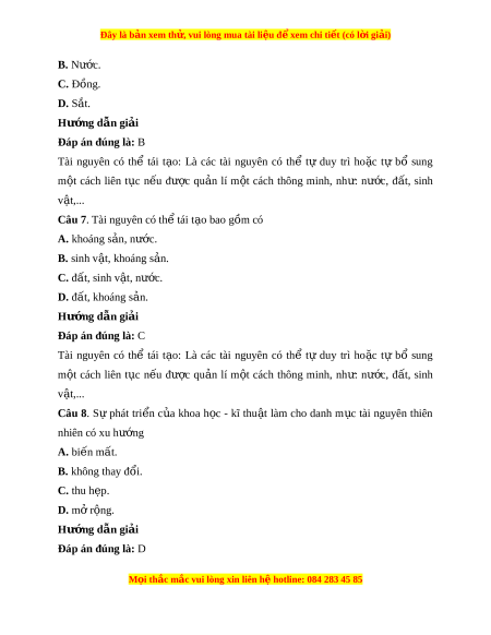 Đây là bản xem th , vu ử i lòng mua tài li u ệ đ xe ể m chi ti t (c ế ó l i ờ gi i ả ) B. Nư c. ớ C. Đồng. D. S t ắ . Hư ng d ớ ẫn gi i ả Đáp án đúng là: B