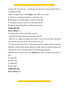 Câu 9. Tài nguyên thiên nhiên không có đặc đi m ể nào sau đây? A. T t ấ c các ả tài nguyên đã đư c ợ con ngư i ờ khai thác.