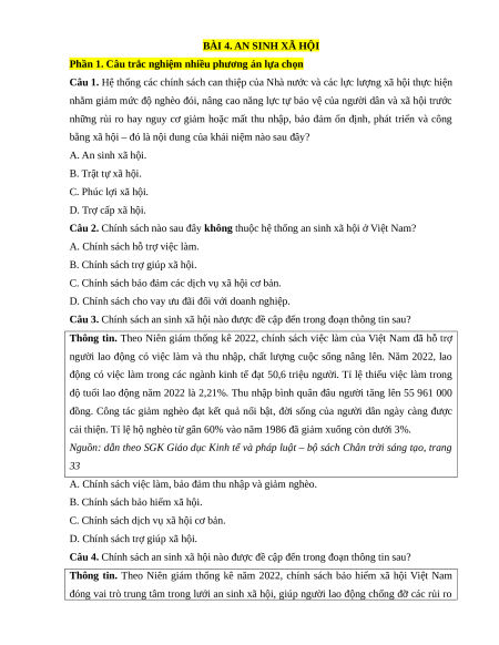 BÀI 4. AN SINH XÃ HỘI
