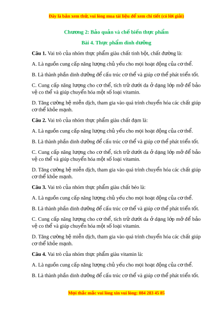 + Đáp án D: là vai trò c a nhóm ủ th c ph ự m ẩ giàu vitamin Câu 2. Đáp án đúng: B Giải thích: M i