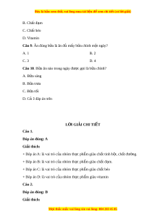 + Đáp án D: là vai trò c a nhóm ủ th c ph ự m ẩ giàu vitamin Câu 3. Đáp án đúng: C Giải thích: