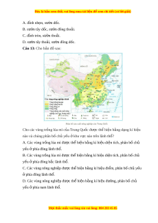 Đây là bản xem th , vu ử i lòng mua tài li u ệ đ xe ể m chi ti t ế (có l i ờ gi i ả ) A. đỉnh nh n, s ọ ư n ờ dốc. B. sư n t ờ ây dốc, sư n đông t ờ ho i ả . C. đỉnh tròn, sư n t ờ ho i ả . D. sư n ờ tây tho i ả , sư n đông d ờ ốc. Câu 13: Cho b n đ ả ồ sau: